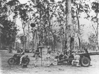 With the Army (continued)Professor D. Mellor stated:'When it became necessary to bring a barrage down to within fifty or eighty yards of our own troops, meteorologists were hard put to it to keep up a sufficiently rapid flow of observations. Firing in the jungle at night to prevent infiltration by the Japanese was often greatly assisted by a knowledge of wind velocity. It was possible for the artillery to direct its fire to a particular zone without preliminary ranging shots, and so, to surprise the enemy.' A somewhat similar dramatic incident occurred when I was in charge of a detachment of No. 1 MMF at No. 1 Australian Corps, Headquarters on the Atherton Tableland, Queensland, during 1944. The AIF 6th and 9th Divisions were there preparing for the forthcoming campaign in the Aitape-Wewak-Nadzab area of northern New Guinea. On 23 November 1944 an artillery battery of 6-inch howitzers was conducting a shoot for officer training purposes. The scene was the wilderness of the Walsh River area. The Colonel of the regiment involved, and a group of subordinate officers, were at an observation post there about nine miles from the gun emplacements. The Colonel had ordered me to stand by with the 'meteor' ready to be used when he directed. ![]() ![]() ![]() ![]() The target was an outcrop of granitic rocks some distance from the observation post. The firing began with the first salvo landing short. The second and third salvos were shorter still. The CO then turned to me and said, 'May we have the meteor please'. I handed over the ballistic figures written on a form and a Captain telephoned them back to the gunpits with the direction that the corrections be applied. We waitedI, with bated breath; the others with amused interest at my being on the spot. The salvo tore the air, whistled, screamed and hitsmack on the rocks! 'There you are gentlemen!' beamed the Old Man. 'Note the effect of ballistic winds and temperature'.