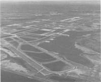 Airports Airport development is a relatively new component of Engineering Construction and Building, not only in Australia but also in the world. Airports date back to the post-First World War years and in Australia to 1921, when our first airline, Western Australian Airways, commenced operations between Geraldton and Broome, followed shortly afterwards by Qantas between Longreach and Charleville. Airports are volumetric, not linear, involving not only pavements, buildings and services, but also air-space, which could extend 20 kilometres from the ends of runways, five kilometres to each side, and several kilometres above them. The airport designer must plan for the requirements of aircraft, both on the ground and in this airspace. As aircraft have developed from two- and four-seater machines of the early 1920s to those carrying 400 to 500 passengers today, larger than Captain Cook's Endeavour, there has been a growing requirement for more advanced technology in the design and construction of airports to handle them. This technology has not required very high mathematical and scientific skills, but sound basic engineering knowledge and practical experience, coupled with comprehensive knowledge of the operational requirements of aircraft in their takeoff and landing phases, and an ability to foresee and plan for the future requirements of a still developing vehicle. Australian engineers and operational personnel, working both in this country and in the forums of the International Civil Aviation Organization (ICAO), have played a significant part in the development, by ICAO, of airport design standards, recommended practices and guidance material for use throughout the civil aviation world. This work has been embodied in Annex 14 (Aerodromes and Ground Aids) to the Chicago Convention on International Civil Aviation, first adopted in 1946 and continually updated and refined. With the strong Australian contribution to this ICAO activity, our airport design, including such elements as the dimensions and configuration of runways and other pavements, approach and other flight clearance surfaces, and airport lighting and surface markings, has in consequence closely followed this Annex 14 and its associated guidance material. Airports can involve large engineering and construction projects. A first class airport in Australia in 1940 required a length of about 1400 metres of natural land surface. Today large international aircraft require at least 2500 metres of very high strength runway pavement. The total pavement of such an airport is approximately that of a road, six metres wide, from Sydney to Canberra. Design of airport pavement configurations has developed in line with aircraft development. For example, better aircraft out-of-wind landing capability in the late 1940s reduced the number of runways required at an airport from three or four to one, or at most two. This simplified the overall pavement configuration, but faster aircraft and larger wheel assemblies required more complex pavement intersections. Australia is recognised as one of the world leaders in all this development. Technology developed in the 1960s by the Department of Civil Aviation (DCA, later to become the Department of Aviation, DofA) to determine optimum geometrical shapes for pavement intersections, has been used to increase both operational efficiency and economy at not only Australian, but also many overseas airports. It is for good reason that runways have always been of particular significance in the development of Australian airports (Figs. 57 and 58). Until the mid-1930s, airports were natural grassed areas or bare ground such as clay-pans; smooth enough, according to an early Civil Aviation Board publication, for it to 'be possible to drive a car over the surface at 25 to 30 m.p.h. without discomfort'. There are, however, very few parts of Australia where grasses can be established to provide surfaces needed for frequent operation of even small aircraft. This, and the difficulty of providing and maintaining suitable surfaces from our natural soils, brought comparatively early runway development. We had runways in the mid-1930s at places such as Cloncurry, Newcastle Waters, Brunette Downs and Wyndham, before they had been developed at overseas airports except those serving a very few cities of Europe and the United States. ![]() ![]()